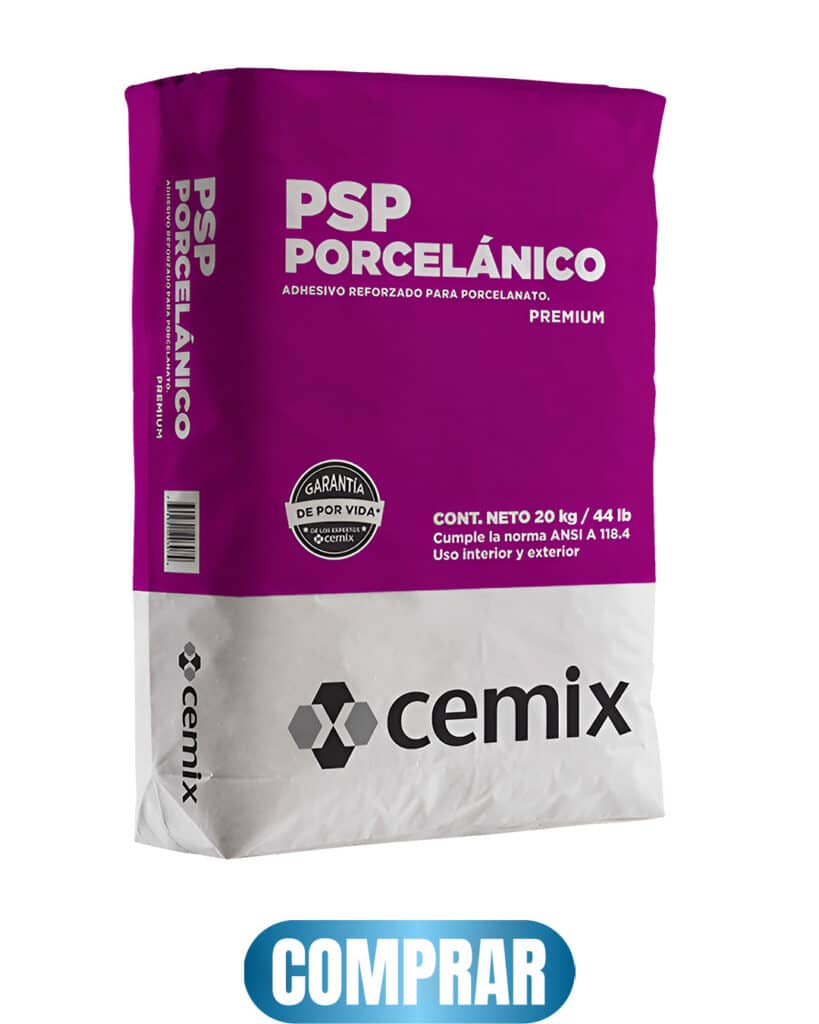 El PSP Porcelánico de Cemix es un adhesivo cementoso especializado ideal para instalar porcelanato, granito, mármol, piedra natural, cerámica, vidrio y cantera, tanto en interiores como exteriores. Diseñado para aplicaciones residenciales y comerciales, es perfecto para instalaciones piso sobre piso y áreas con tráfico peatonal intenso.