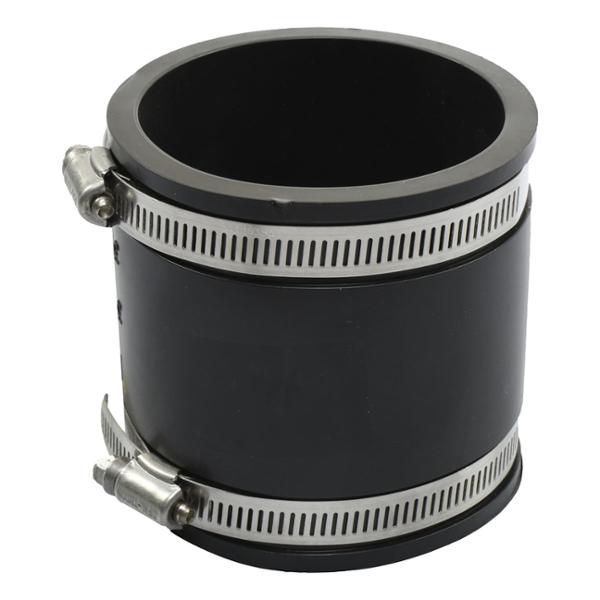 Está hecho de PVC negro, resistente y flexible para eliminar las fugas en la unión de tuberías de PVC, fierro fundido, barro, asbesto, concreto y cobre.
