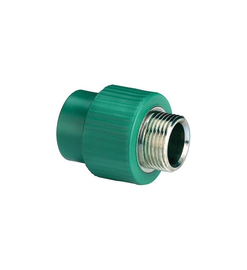 CONECTOR MACHO DE 32 MM x 3/4 Conexiones con inserto plástico para la Línea Hidráulica Tuboplus. Inserto de plástico de ingeniería. • Temperatura de operación máxima de 95°C a 2.5 kg/cm2. • Presión de trabajo máxima 20 kg/cm2 a 20°C. • Cuerdas tipo NPT compatibles con los accesorios hidráulicos en el mercado. • Alta resistencia a la corrosión