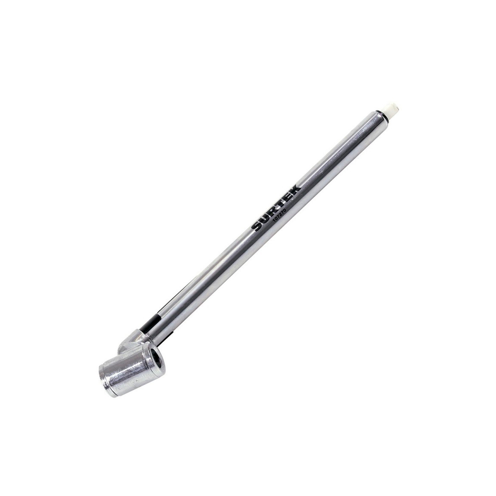 Gauge profesional doble cabeza para válvulas con dirección interna y externa. Con presión máxima de 120PSI, marca Surtek. Cuenta con un cuerpo de acero cromado, una rosca de NPT de 1/4 in. Su tipo de conector es de macho y hembra. Cuenta con una regla medidora plástica de 20.5 cm de longitud total. Este es un instrumento para inspección visual que permite determinar más exactamente si la medida o contorno de una pieza tiene las dimensiones requeridas.