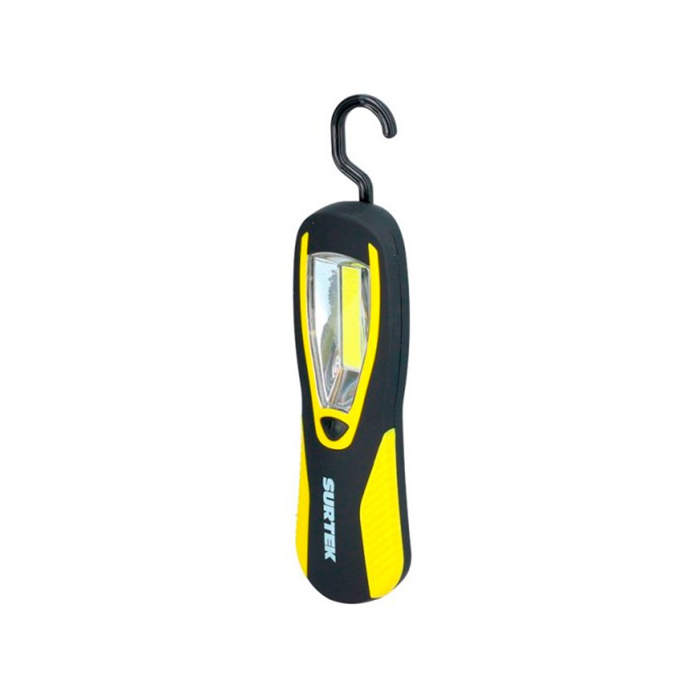 Flujo luminoso de 200lm, distancia de iluminación de 15m, portable, temperatura de color 6500K. Ideal para talleres. El gancho e imán permiten iluminar dejando las manos libres. Hasta 3 horas de uso continuo. Resistencia a caídas de hasta 1 metro