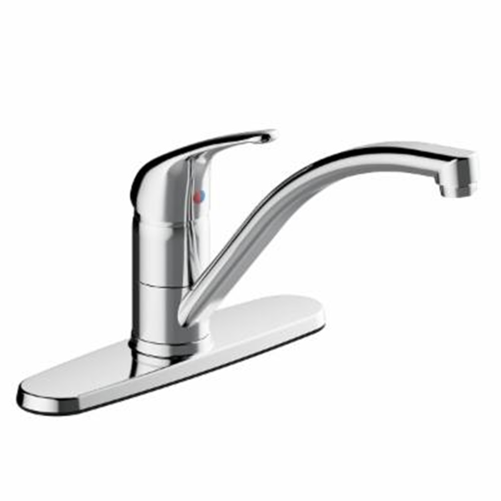 Llave monomando para fregadero en acabado cromada, cuerpo de latón con cartucho cerámico de 1/4 de vuelta, flujo máximo de 8.3 litros por minuto