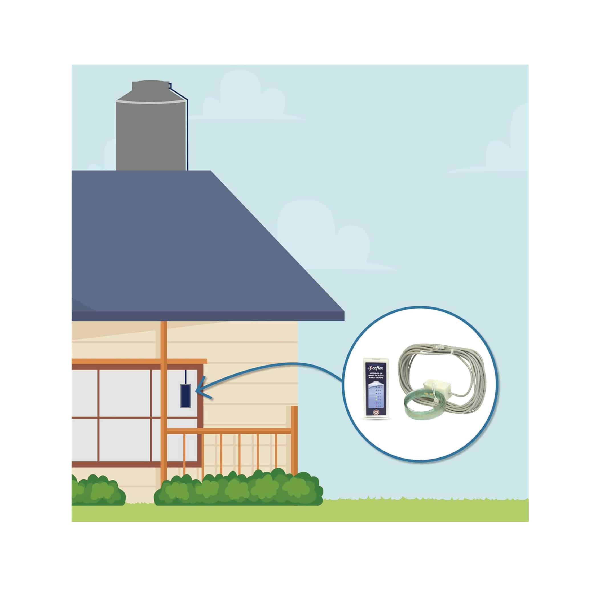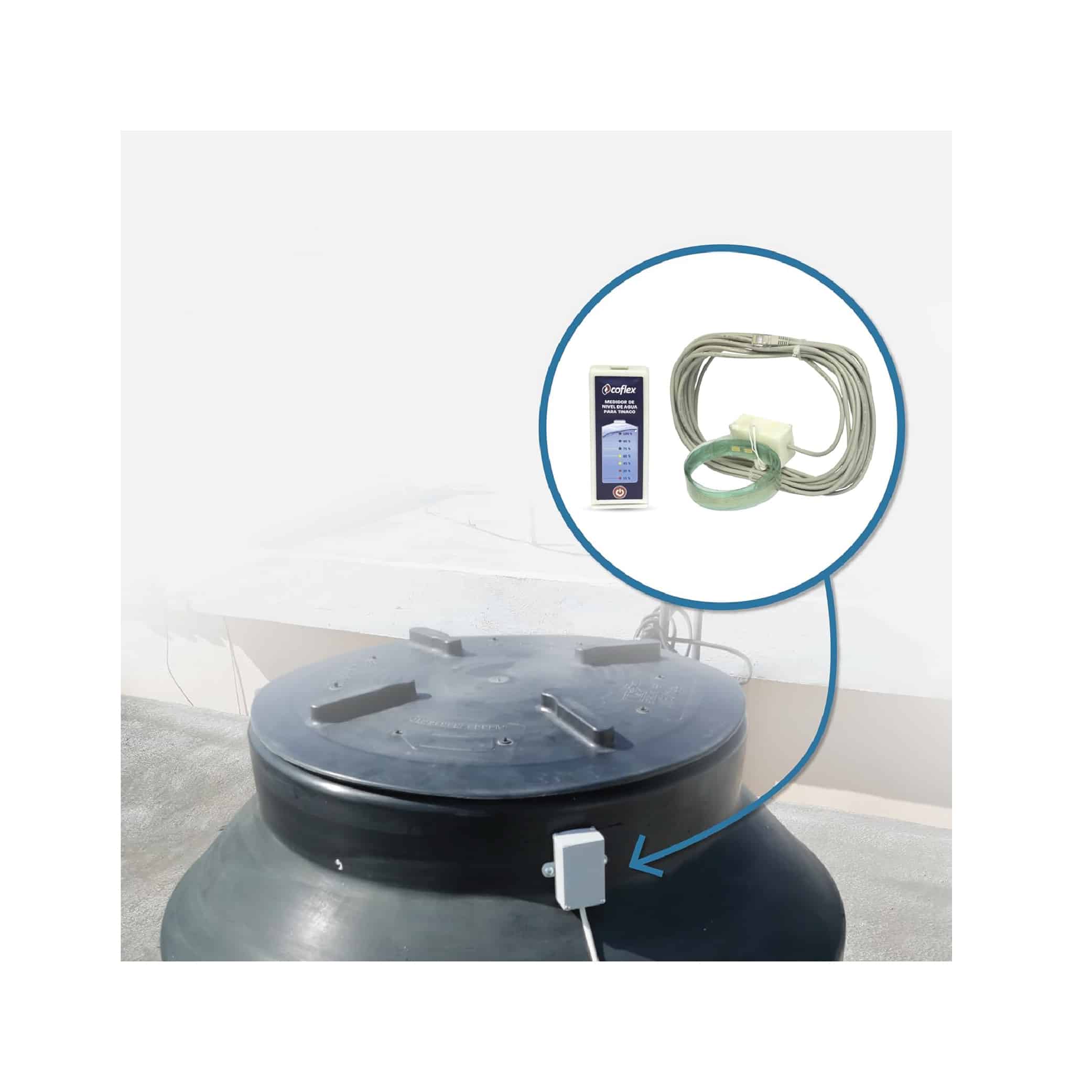 Dispositivo con tecnología que detecta la conductividad del agua e indica con un solo click en el display en qué nivel de llenado se encuentra el tinaco.