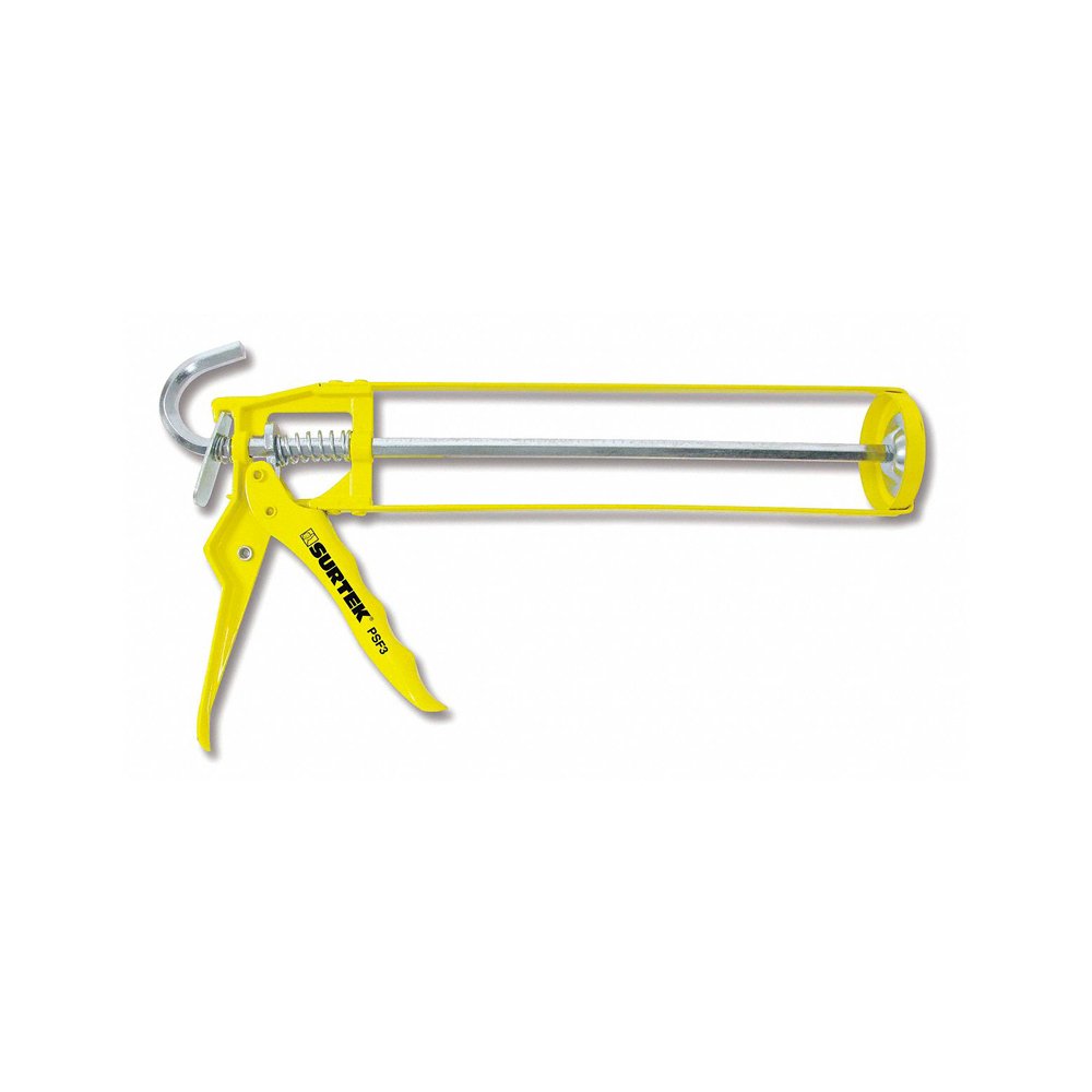 La pistola calafateadora marca Surtek, están remachadas doblemente al mango. Están construidas con tensores de acero. Fabricada en aluminio inyectado. Pistola profesional con émbolo de espiga de acero con sección hexagonal que mejora el trinquete. Pistolas calafateadoras tipo esqueleto que utilizan cartucho estándar. Economica. Tipo profesional. Pistola calafateadora es una herramienta que permite la dosificación de selladores, adhesivos o silicones con un contenido de 295 ml, ofrece una aplicación precisa y controlada, evitando salpicaduras.