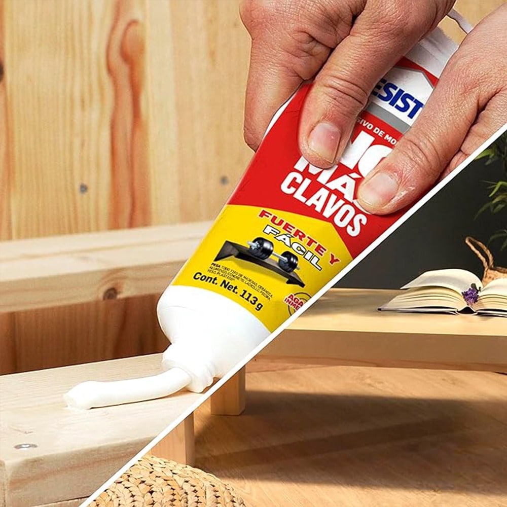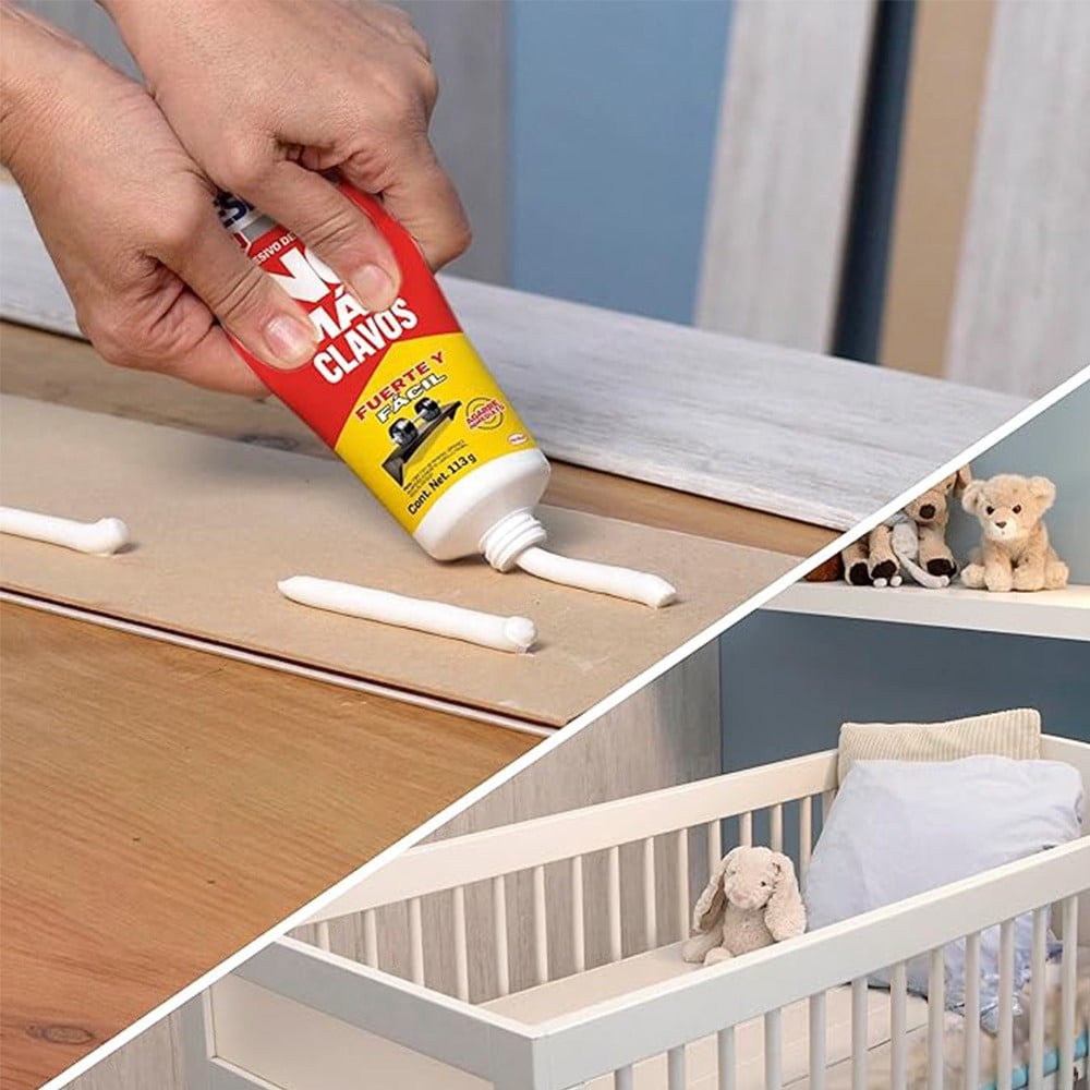 Aplicaciones en Interiores: Sin necesidad de clavos, puedes usarlo para fijar gabinetes, cenefas, zoclos, molduras de poliestireno, repisas de ventana, percheros y mucho más. Es ideal para cualquier trabajo dentro del hogar.