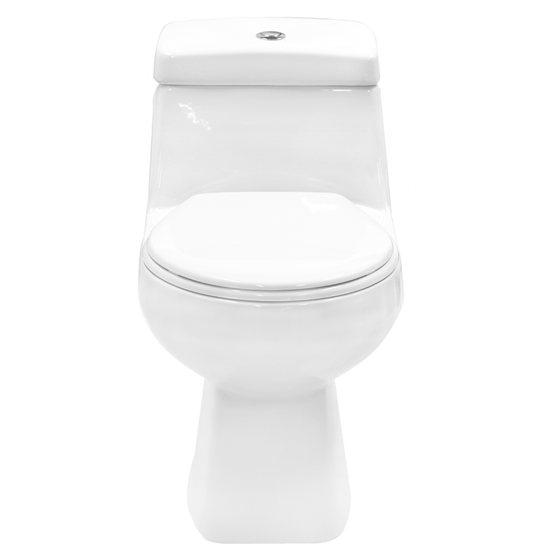 Sanitario Premium de una pieza, de taza redonda con botón superior. El modelo Bellini es ideal para espacios reducidos, su diseño compacto y de excelente rendimiento permite adecuarse a cualquier cuarto de baño. De altura confortable, herrajes instalados e incluye asiento.