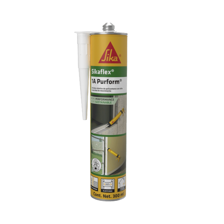 Sellador elástico Sikaflex 1a blanco 300 ml Sika, elaborado de poliuretano de un sólo componente, con alto desempeño para el sello de juntas arquitectónicas con fuertes movimientos. Se puede utilizar en estructuras horizontales y verticales, exteriores e interiores de ladrillo, bloque, madera, mortero, concreto, metal, aluminio, fibrocemento y vidrio, así como en marcos, muros, ventanas o puertas; también para sello superficial de tanques y tejado. Tiene un rendimiento de 3 m lineales en junta de 1 cm de ancho por 1 cm de profundidad, con un secado al tacto de 4 a 6 horas. Para su aplicación, el área y bordes de la junta deben estar sanos, limpios, secos, libres de aceite, grasa u otras sustancias extrañas que puedan impedir la adherencia del producto.