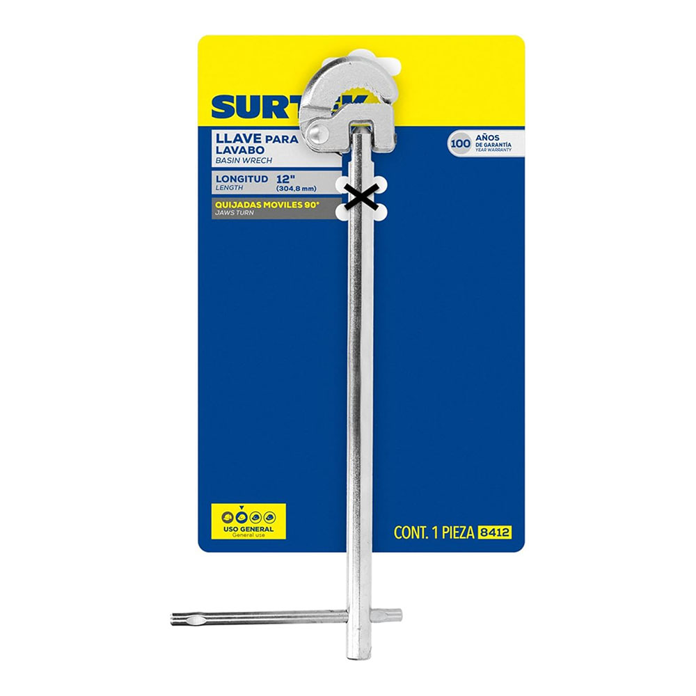 La llave para lavabo de 12″ de Surtek es una herramienta diseñada para facilitar el trabajo en espacios reducidos, como debajo del lavabo. Con quijadas móviles, te permite ajustar la llave hasta un ángulo de 90°, lo que hace más sencillo trabajar con tuercas en áreas de difícil acceso. Además, su recubrimiento de cromo resistente a la corrosión asegura una larga durabilidad, protegiéndola del desgaste y la humedad. Perfecta para proyectos de plomería, esta llave es una opción confiable para quienes buscan comodidad y eficiencia.